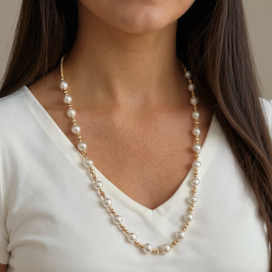 Auksinis perlas – ilgi paauksuoti vėriniai su karoliukais