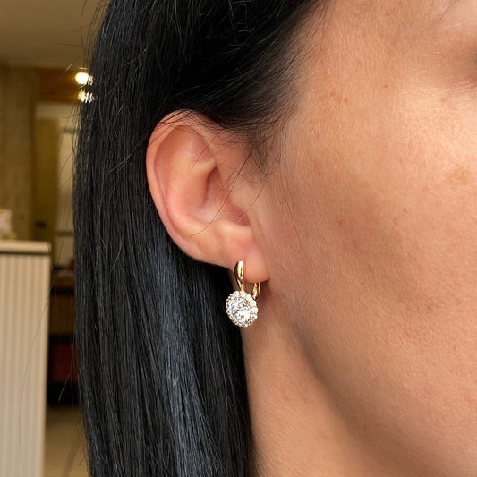 Paprastas blizgesys – auksu padengti auskarai su cirkonio akmenimis