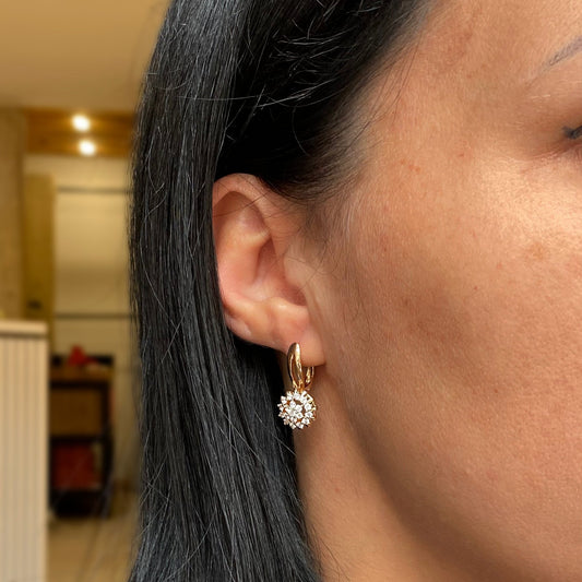 Gėlių elegancija – auksu padengti auskarai su cirkonio akmenimis