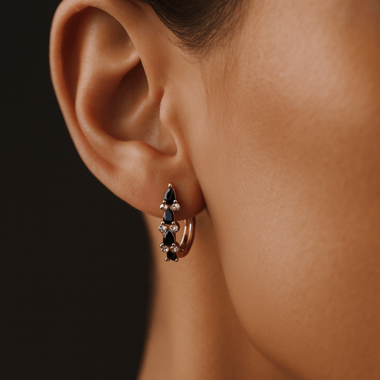 Midnight Drops – Apzeltīti auskari ar melniem kristāliem
