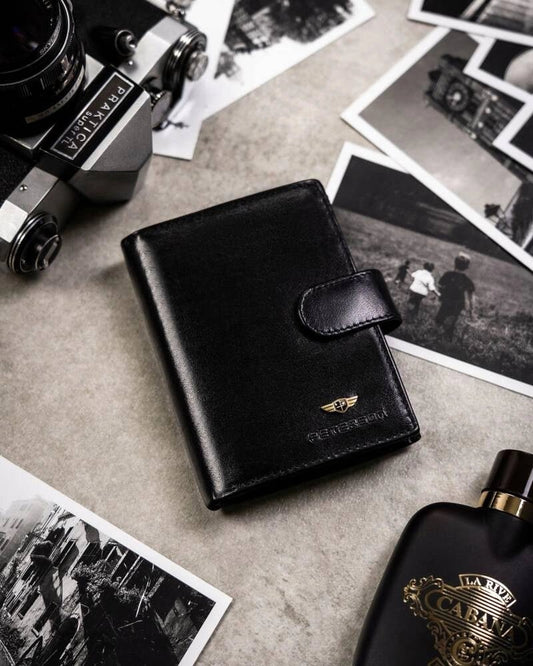 Dovanų rinkinys: juoda vyriška odinė piniginė, kortelių dėklas ir raktų pakabukas
