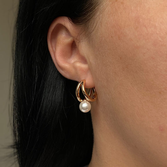 Žvilgantys auksu dengti žiediniai auskarai su cirkonio akmenimis