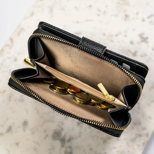 Elegantiška moteriška piniginė su užtrauktuku ir saga