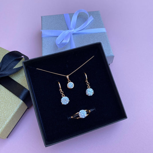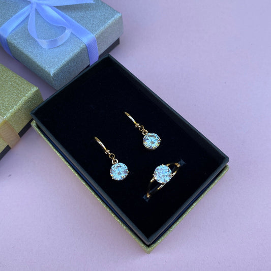 Sidabruotas papuošalų rinkinys – auskarai ir žiedas