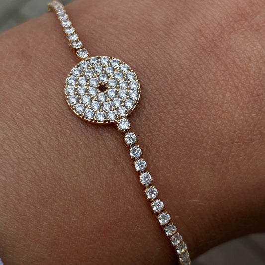 Reguliuojama auksu dengta apyrankė su cirkonio akmenimis
