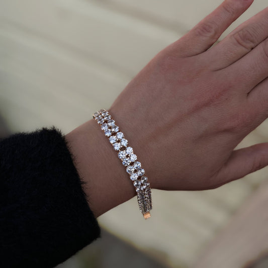 Aurelija – paauksuota apyrankė su dviguba kristalų eile