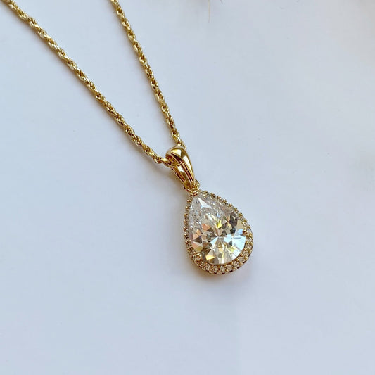 Auksu padengtas vėrinys su ašaros formos kristalu (skaidrus ir rožinis)