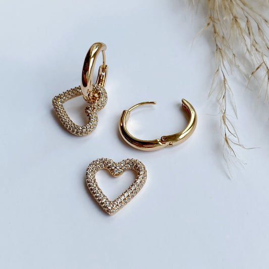 Eliza - 18 karatų auksu padengti širdelės formos lašo formos auskarai
