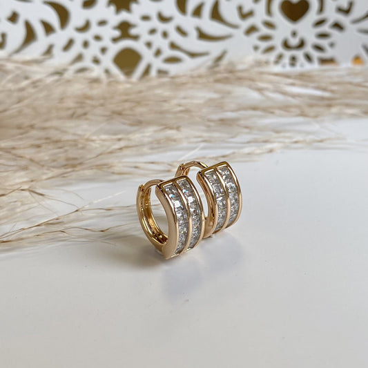 Auksuoti žiediniai auskarai su cirkonio akmenimis