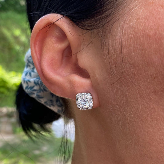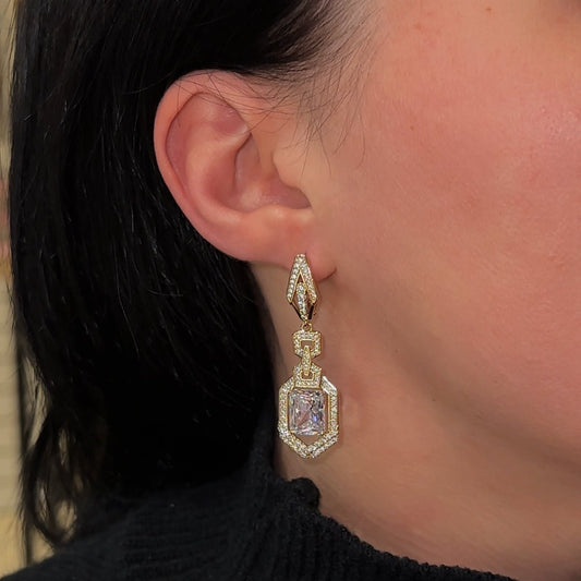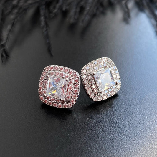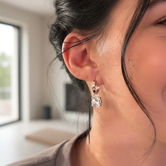 Sidabruoti žiediniai auskarai su cirkonio akmenimis - nuimamas pakabukas