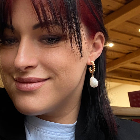 Auksuoti žiediniai auskarai su perlais ir kristalais