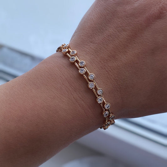 Dviguba elegancija – paauksuota apyrankė su cirkoniais