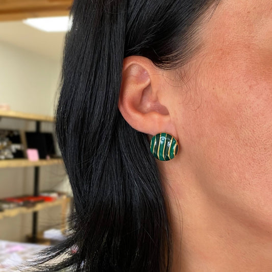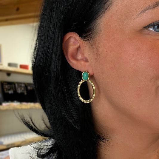 NUOLAIDAOvalūs auskarai su žaliais akcentais