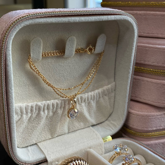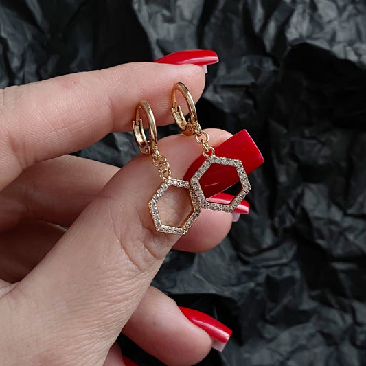 Auksu dengtas papuošalų rinkinys su šešiakampiais kristalais