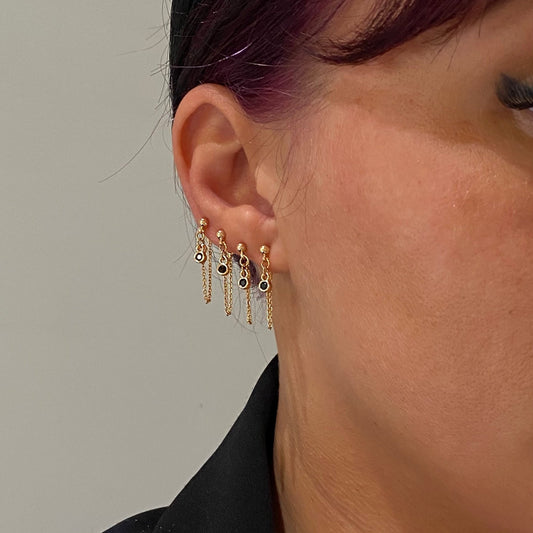 Auskarai „Lana“ – su auksine grandinėle ir juodu akcentu