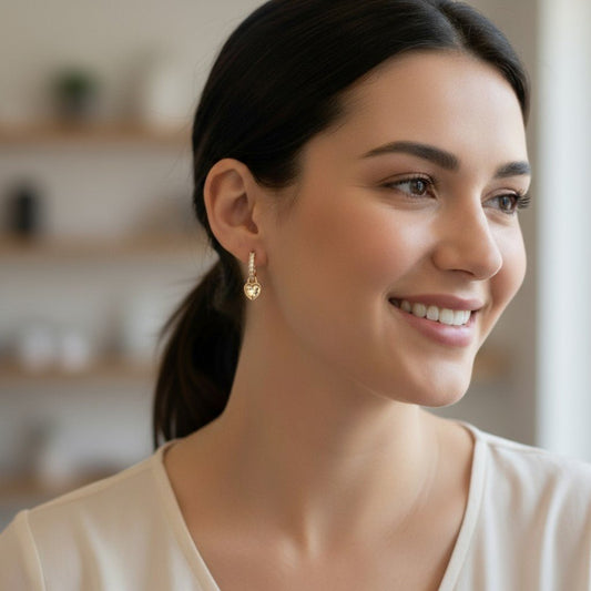 Krištolinės širdies elegancija – auksu padengti auskarai