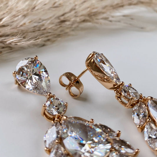 Auksuoti gėlių formos auskarai su spindinčiais cirkoniais