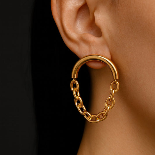 „Bold Loop“ – paauksuoti auskarai su grandinėle