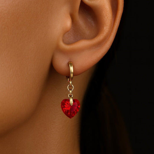 Rubino širdis – paauksuoti auskarai su raudona širdele