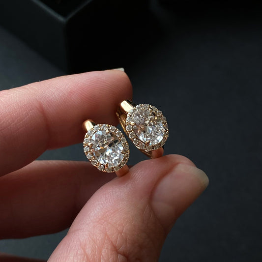 Žvilgantys auksu dengti žiediniai auskarai su cirkonio akmenimis