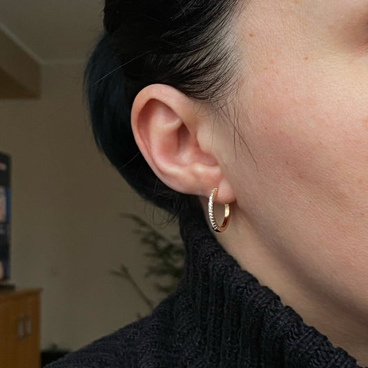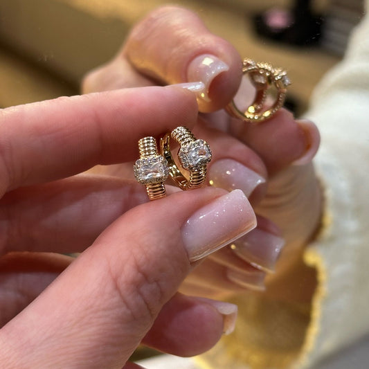 Subtilūs žiediniai auskarai su cirkonio akmenimis
