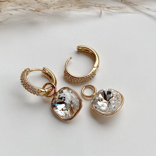 Elegantiški auskarai su nuimamu pakabuku ir cirkoniais
