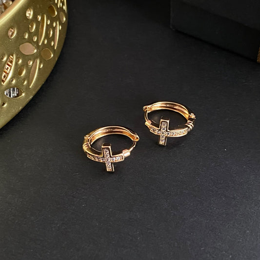 „Faith Hoops“ – paauksuoti auskarai su kryžiaus raštu