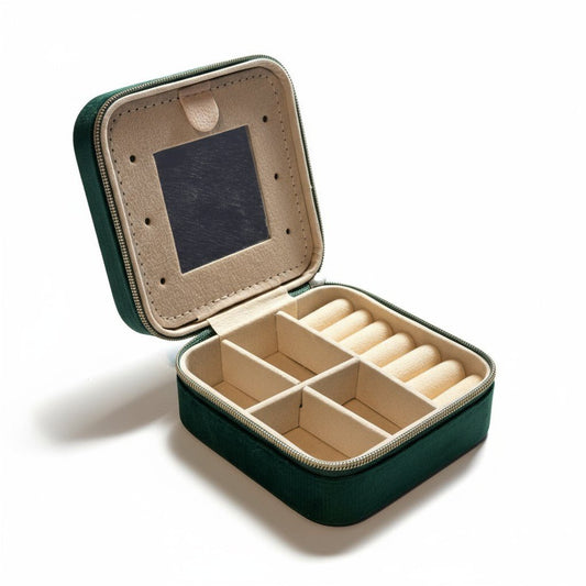 Smaragdo dėžutė – žalia papuošalų dėžutė su veidrodžiu