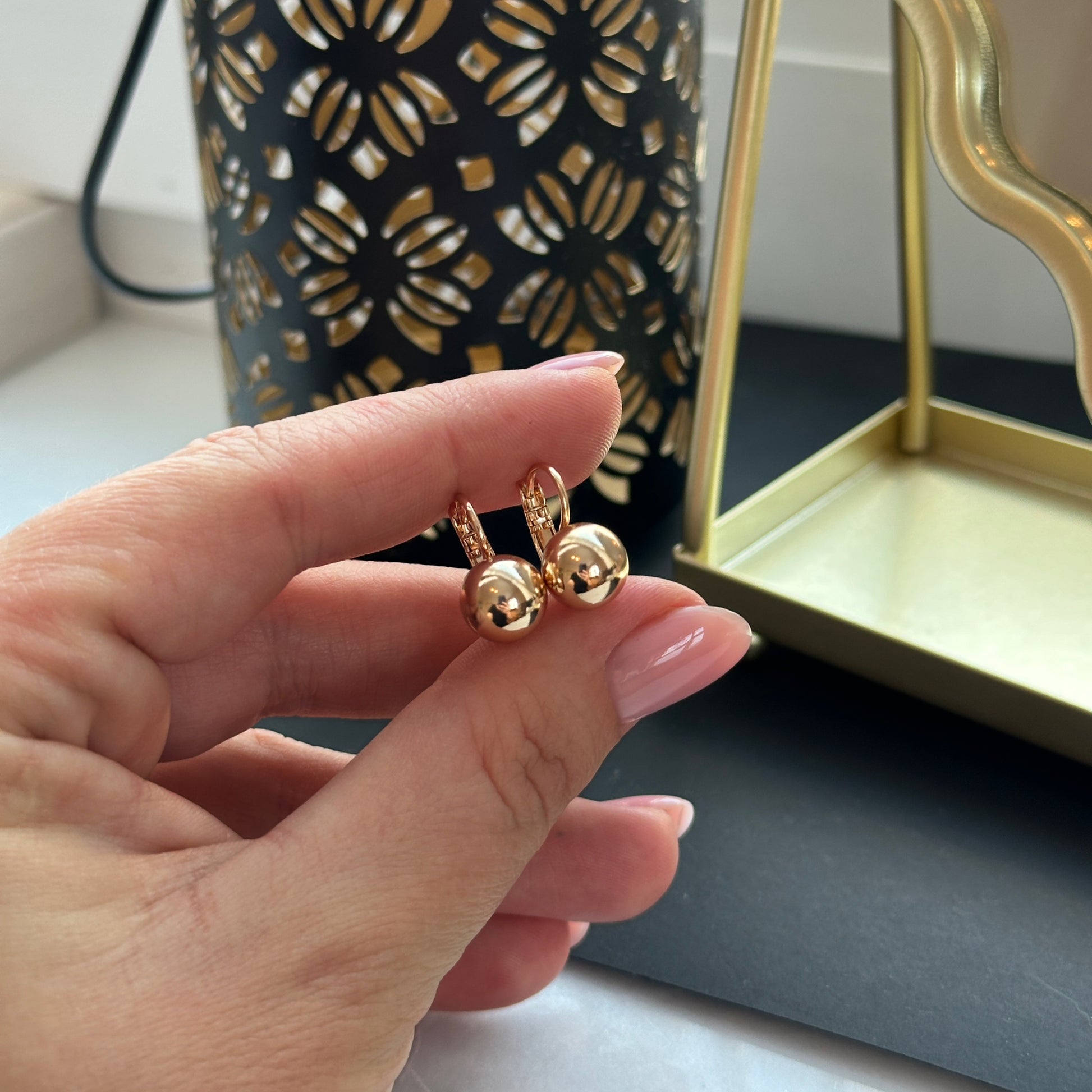 Elegantiški 18 karatų auksu padengti auskarai su lygiu auksiniu rutuliuku ir anglišku užsegimu . Minimalistinis dizainas su švariu blizgesiu – idealiai tinka kasdienai, darbui ir šventėms, jei norite klasikinio akcento be akmenų.
