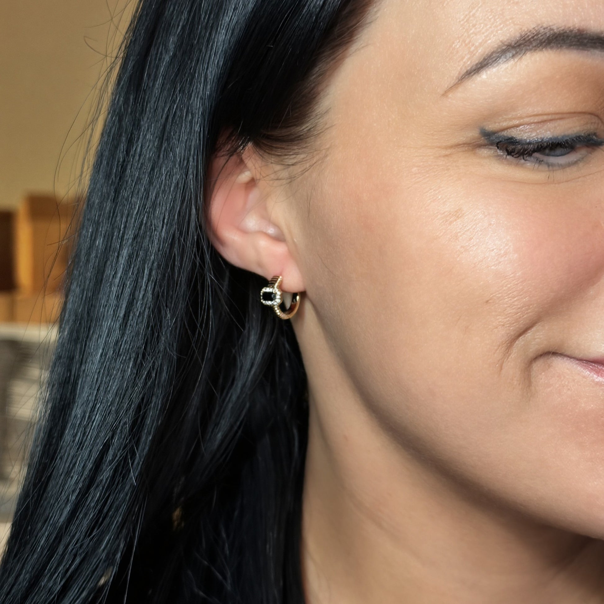 Noir Éclat Hoops – apzeltīti riņķīšu auskari ar melnu cirkoniju